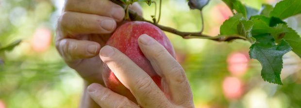 À la fin de l’été ou au début de l’automne, le producteur peut effectuer également un effeuillage manuel : il enlève délicatement les feuilles en surplus pour garantir aux pommes le maximum de soleil.