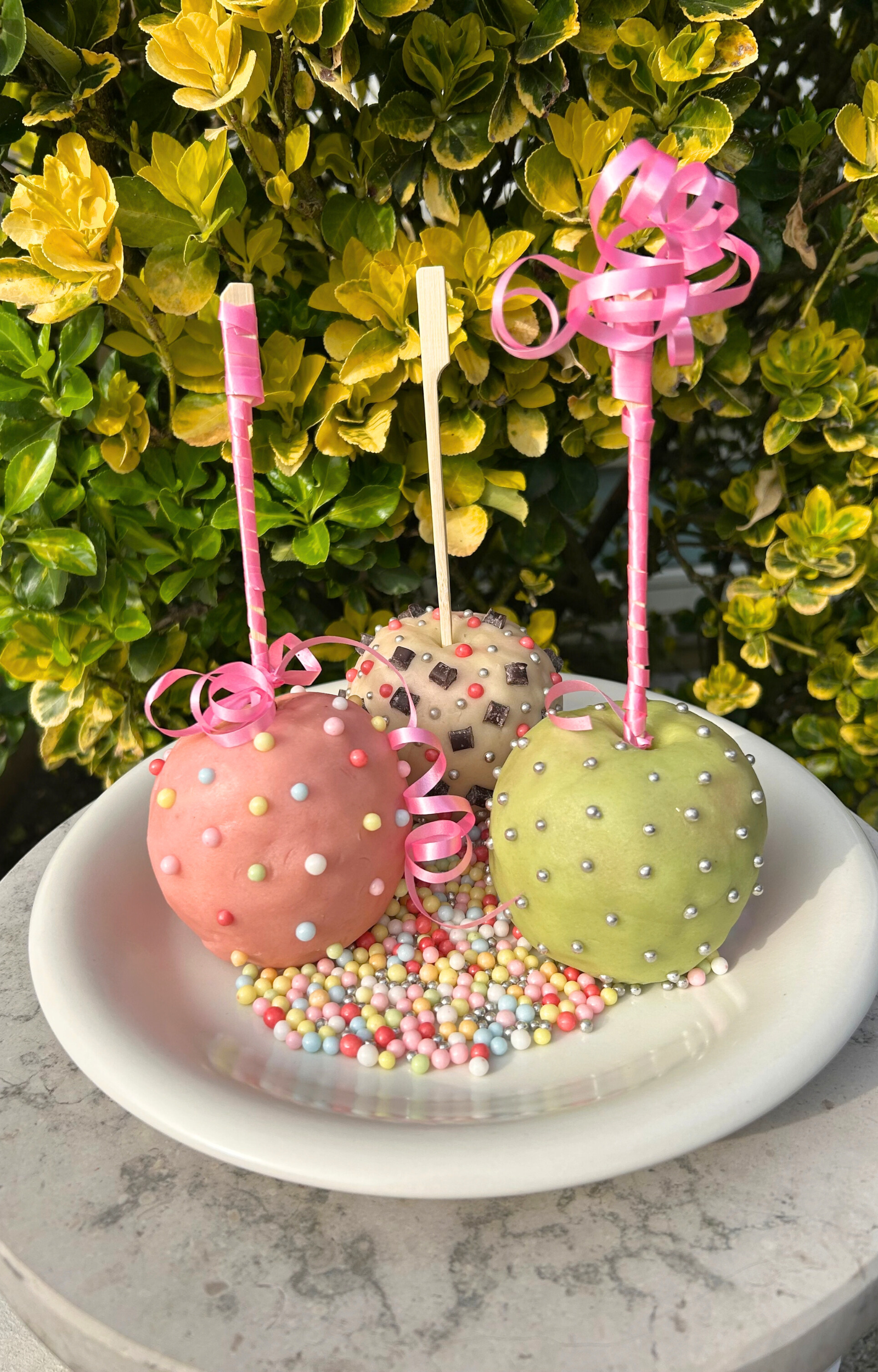 - Nettoyez votre pomme Pink Lady® et recouvrez-la entièrement de pâte d’amande de la couleur de votre choix.